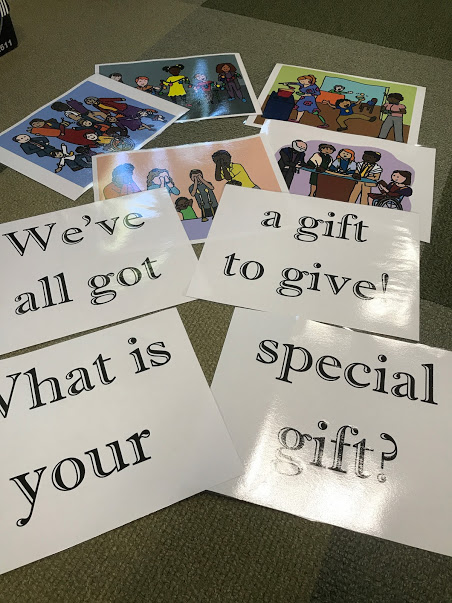 Pictured: interactive sermon from family Rosh Hashanah service based on the synagogue-wide theme of inclusion for High Holidays 2019.